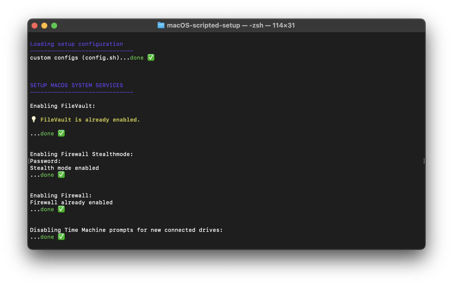 The macOS Scripted Setup is perfect for users who want to save time and avoid the hassle of manually changing settings and installing apps. The whole project, but particularly the configuration file, is portable - so you can keep them on a USB-stick for the next Mac setup. Give it a try and streamline your new Mac setup process!