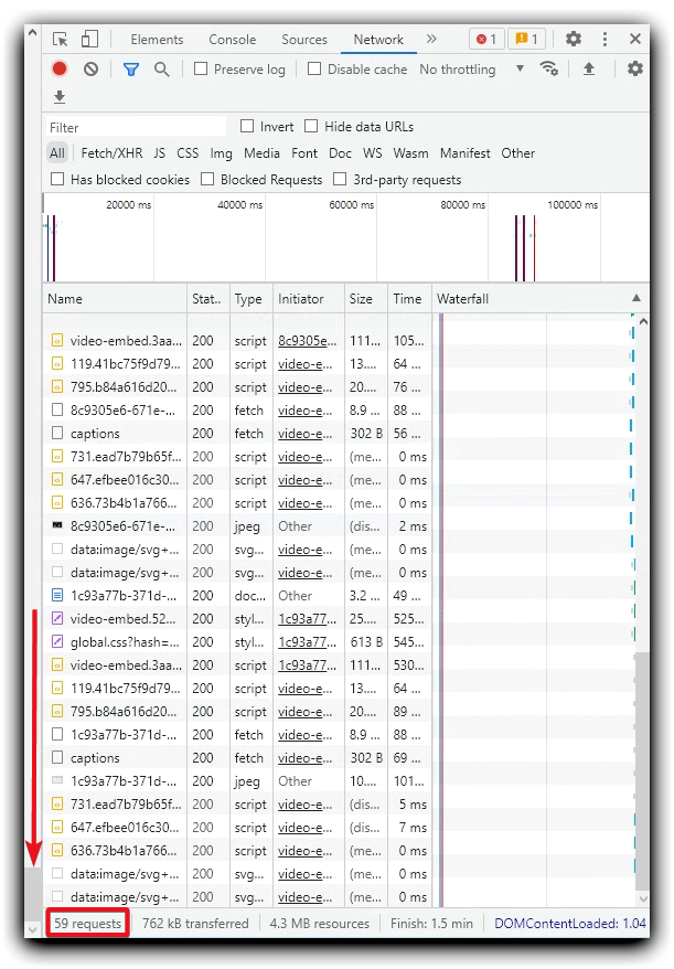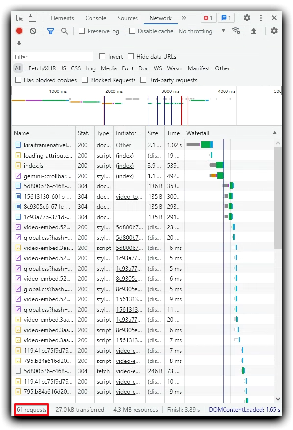 Network section of browser developer tools.